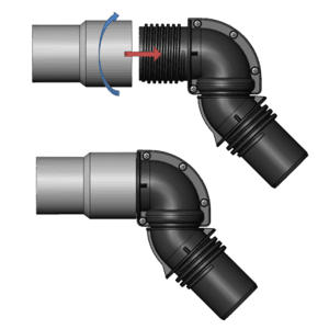 Tired of twisting, curling, kinking vacuum hoses? The Flash Swivel turns to allow twisting hose to straighten out. This makes it easier to clean and to roll up your hoses at the end of a job. The Flash Swivel also keeps vacuum hoses positioned away from your body to reduce interference with your cleaning motion.