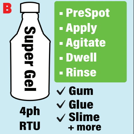 Use SUPER GEL on carpet, upholstery and most other washable surfaces. This product, when used correctly, safely removes gum, tar, grease, oil, crayon, lipstick, candle wax, and much more from all type of fibers!